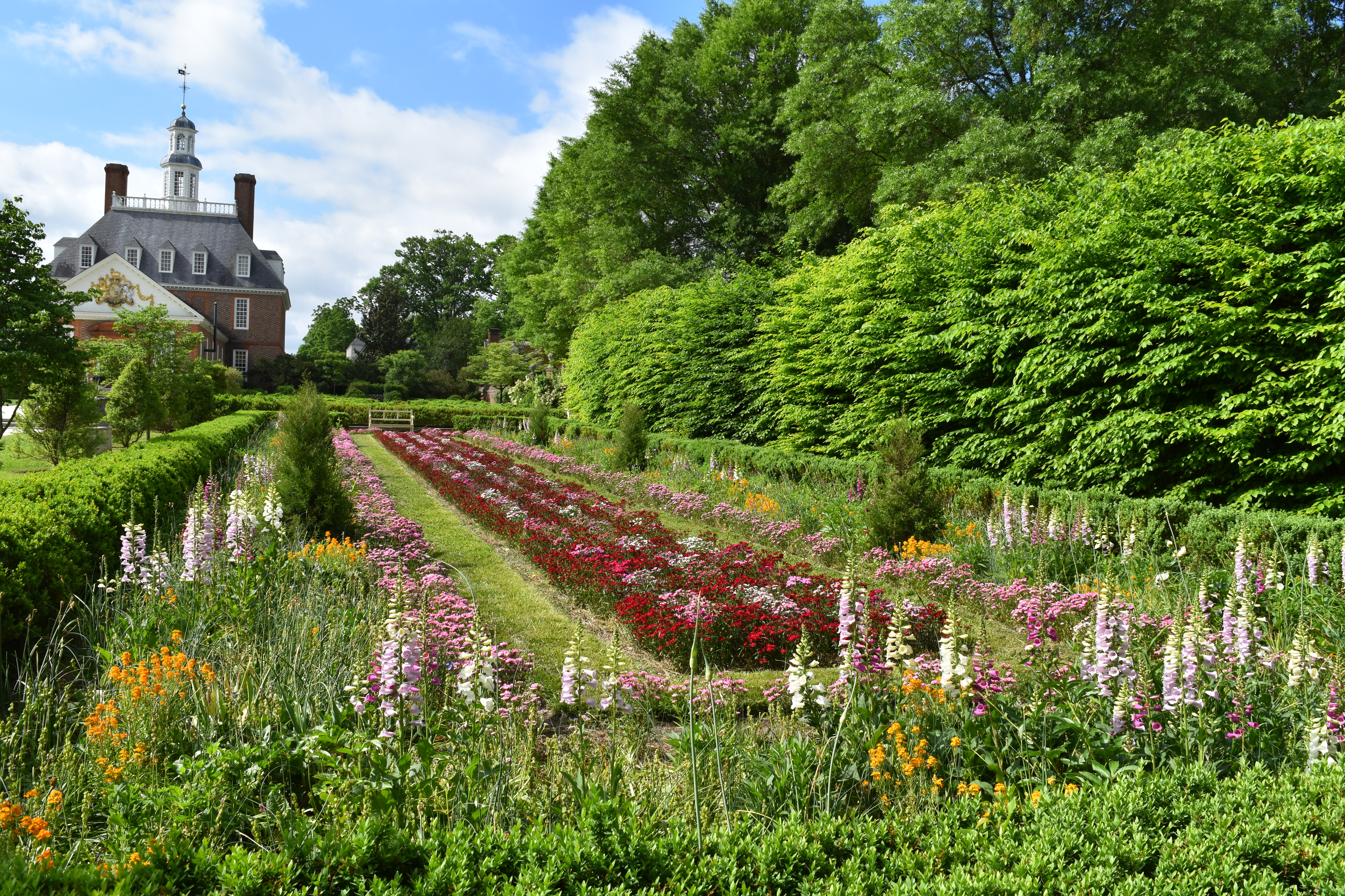 Old-fashioned flowers, herbs, and vegetables at Colonial Williamsburg