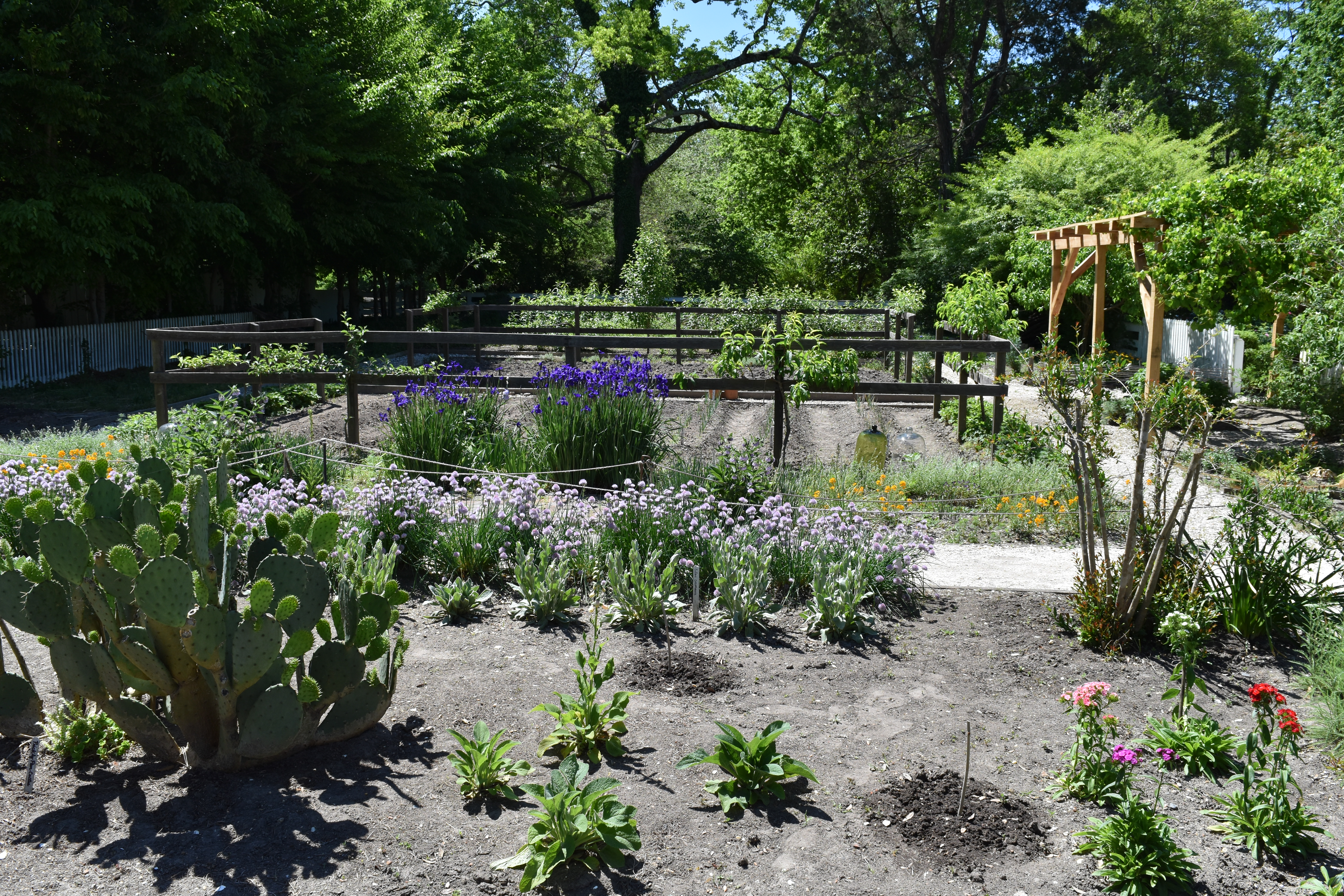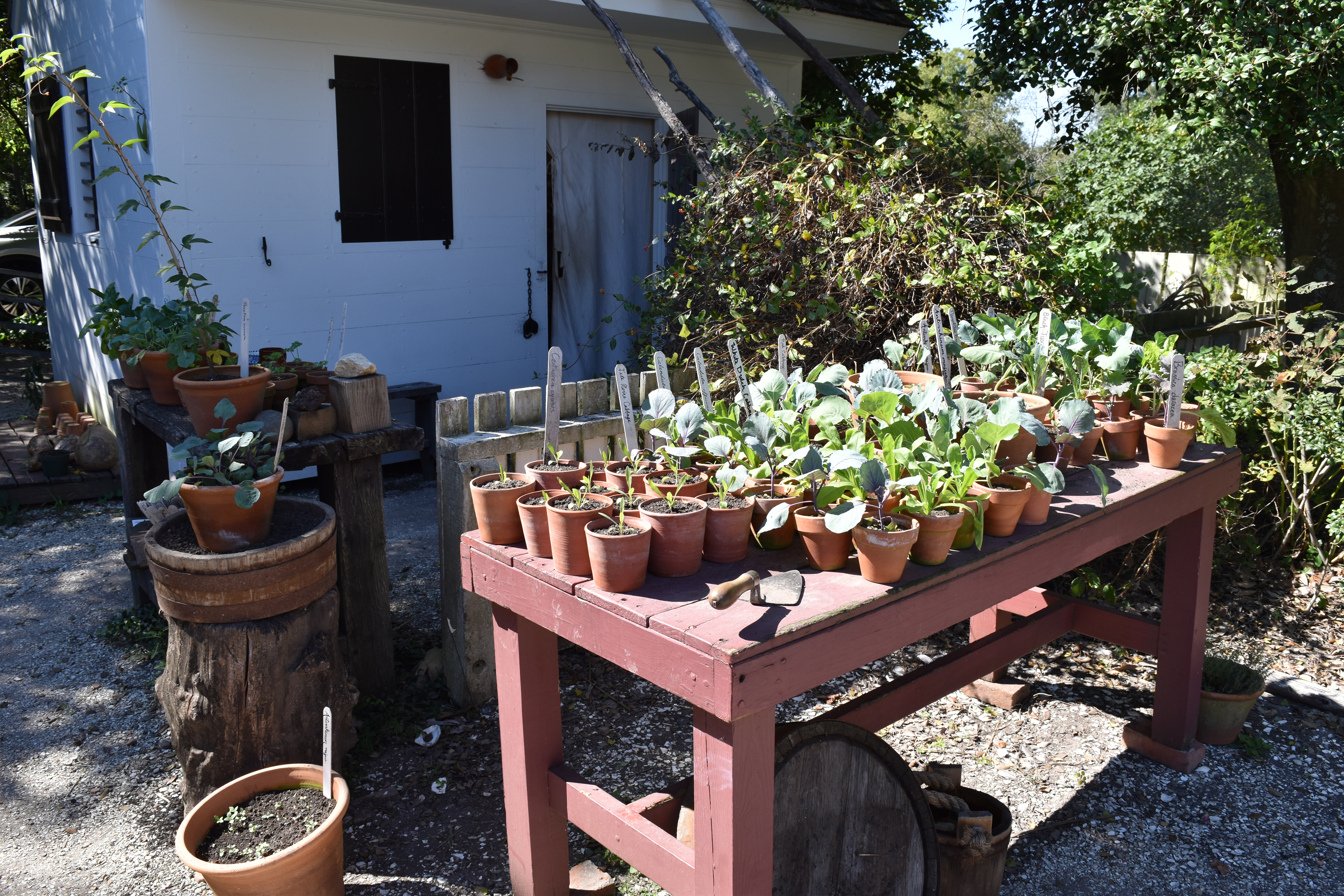 Plants and flowers that would have been grown in America in the colonial times are grown in the gardens.