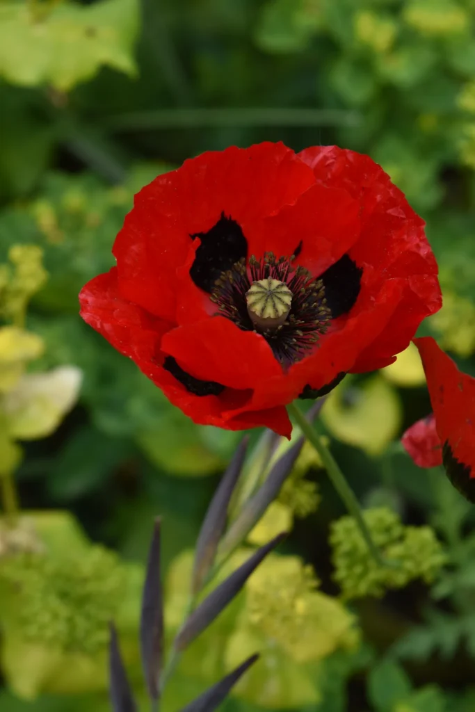 The famous Ladybird Poppies bring a zingy dash of bright red to the late May planting schemes at Great Dixter.