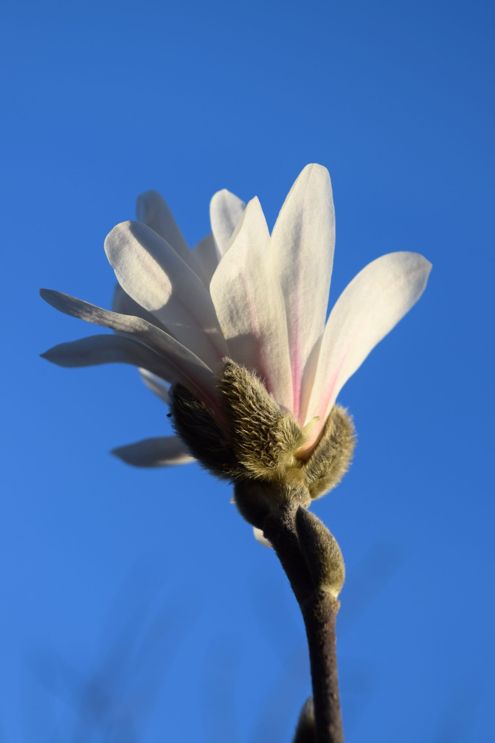 7. (Below) Magnolia stellata, the star Magnolia, white tepals stand out against a bright blue sky.